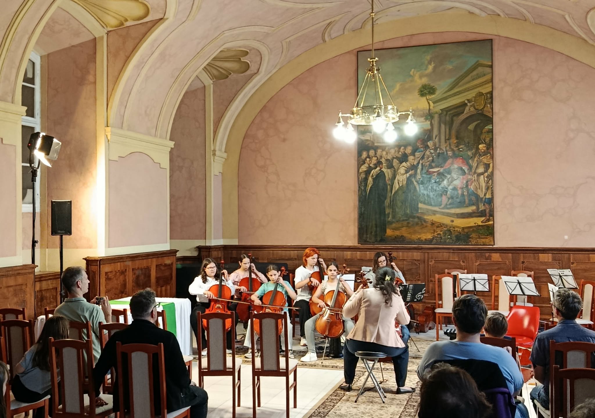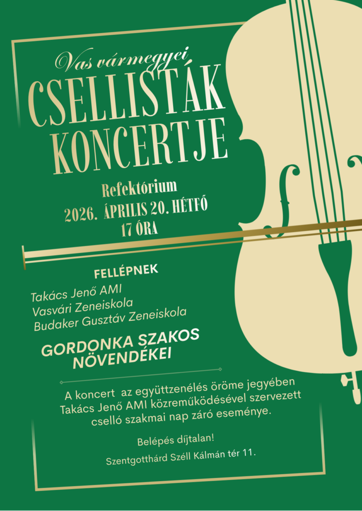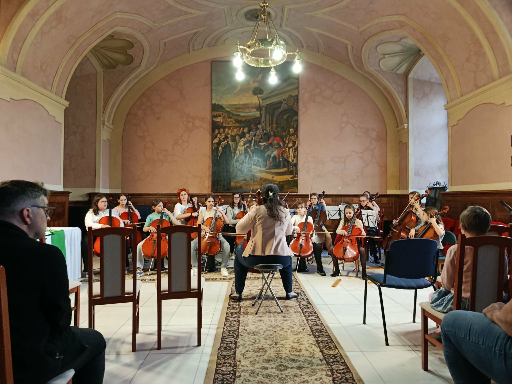 A gordonka szakmai nap délelőttjén közös próba zajlott a vendég zeneiskolások és a szentgotthárdi zeneiskola növendékei részvételével. Ezt követően a tanulók együtt ebédeltek, majd idegenvezetés keretében bejárták a kolostor épületét. A délutáni program újabb zenés próbával folytatódott, a szünetben pedig egy közös fagyizásra is sor került. A 17 órakor kezdődő koncertet izgatottan várták a gyerekek és a szülők egyaránt. A családias hangulatú előadás nagy sikert aratott. A pozitív élmények hatására, Lukács Hedvig tanárnővel már egy következő közös csellós szakmai nap megszervezését is tervezzük.