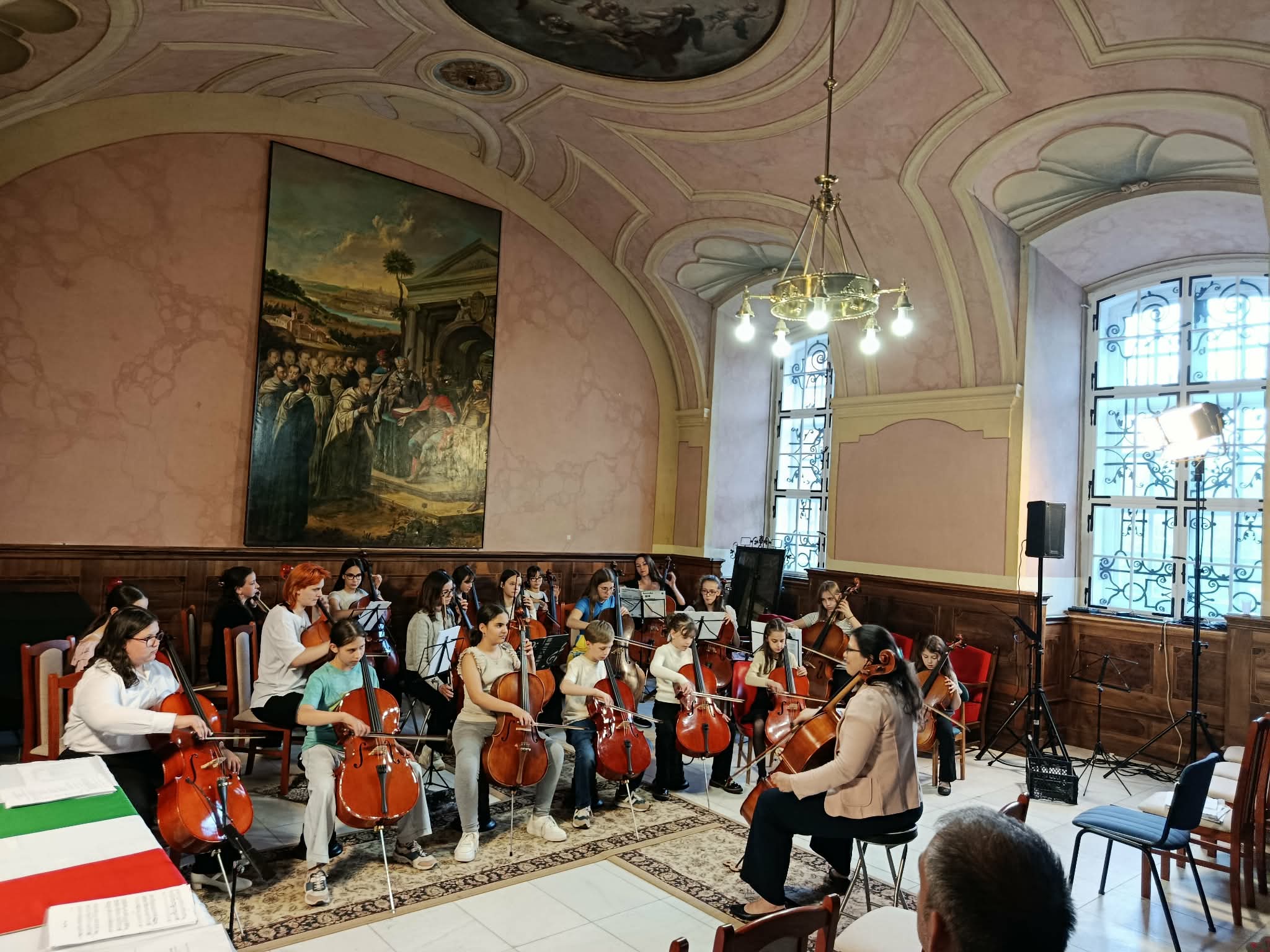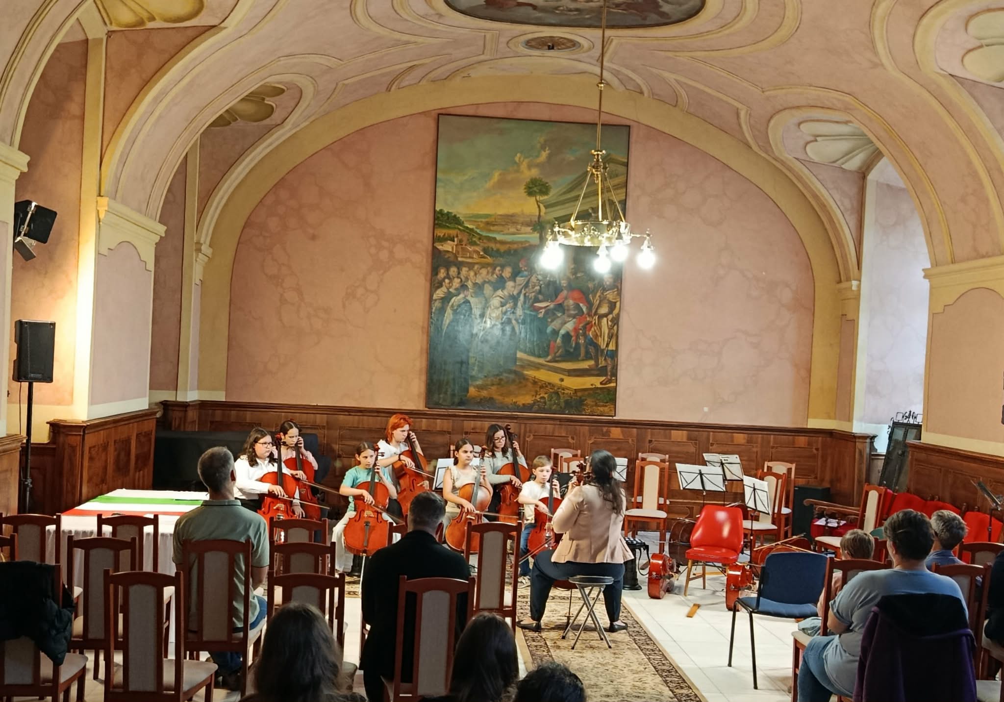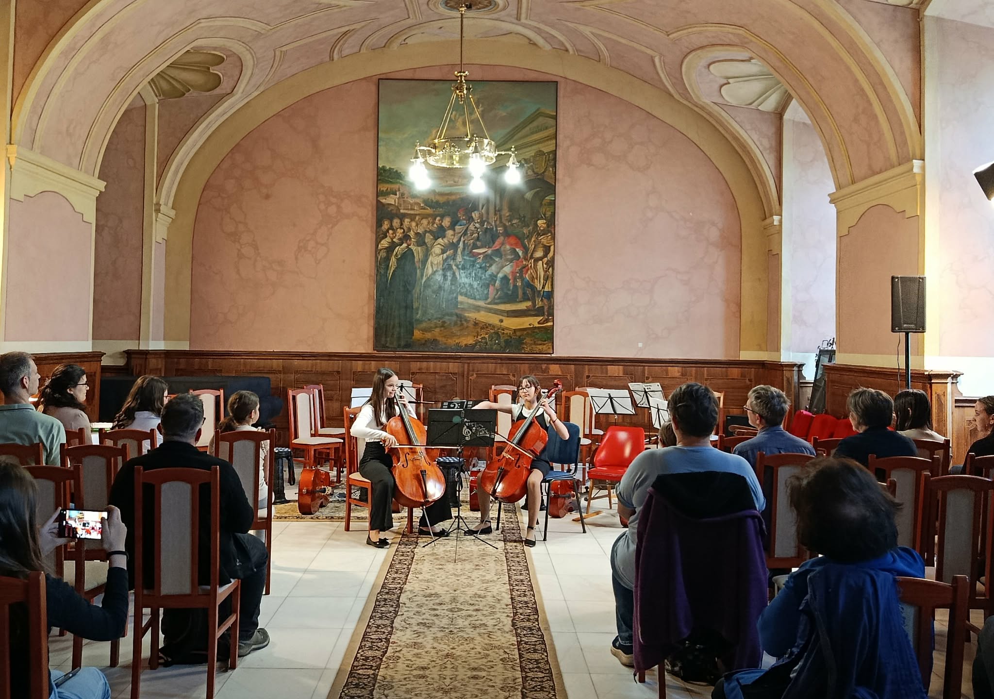 A gordonka szakmai nap délelőttjén közös próba zajlott a vendég zeneiskolások és a szentgotthárdi zeneiskola növendékei részvételével. Ezt követően a tanulók együtt ebédeltek, majd idegenvezetés keretében bejárták a kolostor épületét. A délutáni program újabb zenés próbával folytatódott, a szünetben pedig egy közös fagyizásra is sor került. A 17 órakor kezdődő koncertet izgatottan várták a gyerekek és a szülők egyaránt. A családias hangulatú előadás nagy sikert aratott. A pozitív élmények hatására, Lukács Hedvig tanárnővel már egy következő közös csellós szakmai nap megszervezését is tervezzük.
