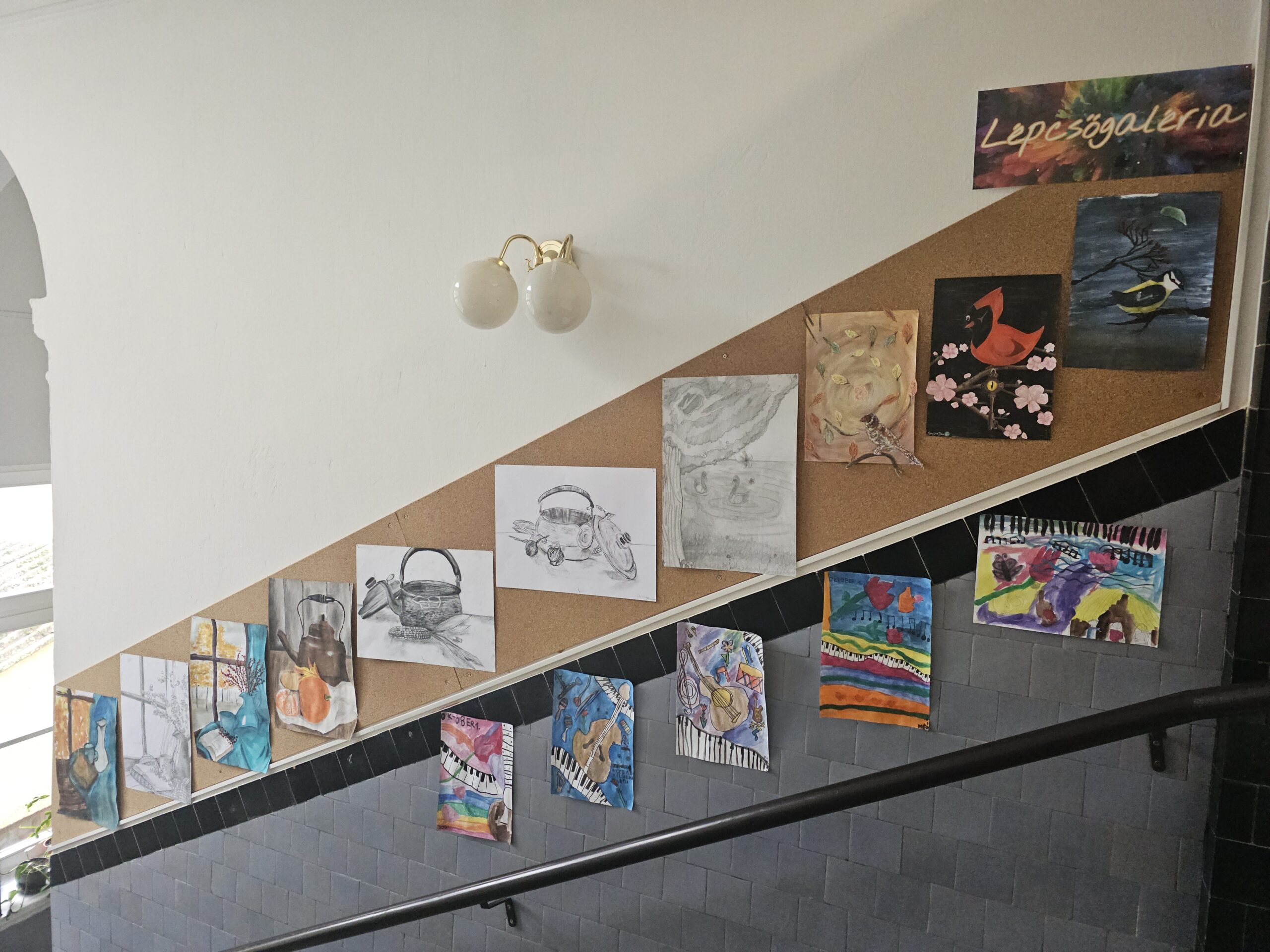 A tavalyi évhez hasonlóan idén is időszakonként kiállítjuk tanulóink munkáit a Lépcsőgalériában. A mai nappal frissült is a képanyag, a szeptemberben készült munkák tekinthetők meg. Változatos témák, különböző anyaghasználat, egyedi stílus jellemzi tanulóink munkáit. A Lépcsőgaléria hétköznapokon, 8-16:30 óráig látogatható.