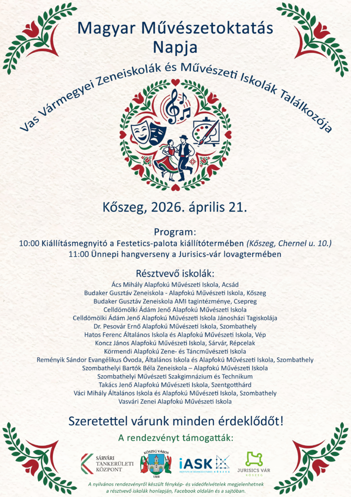A Magyar Művészetoktatás Napja alkalmából iskolánk is részt vett Kőszegen a Vas vármegyei rendezvényen. A kiállításon és a hangversenyen bemutatkoztak megyénk művészeti iskoláinak tanulói.
