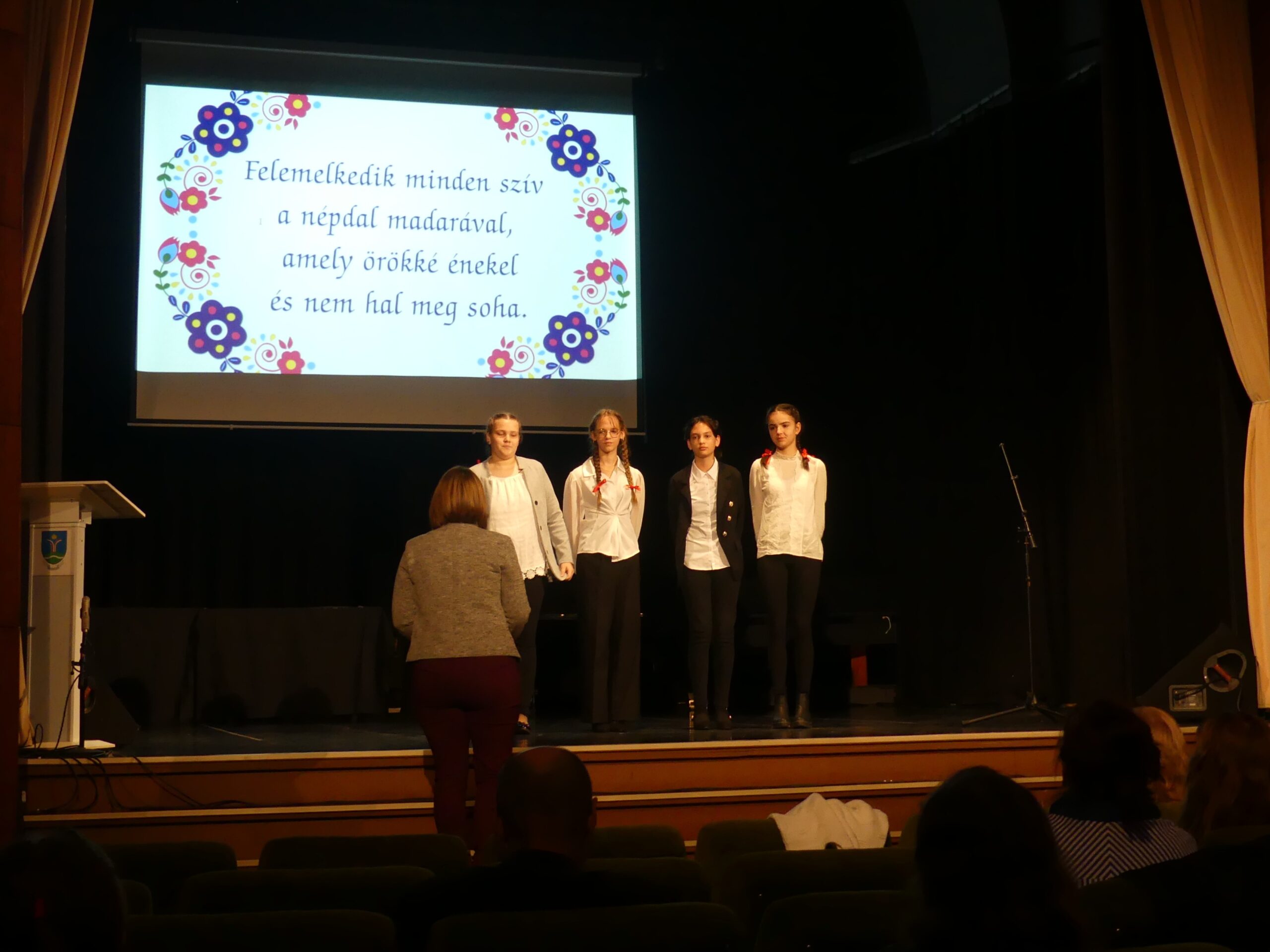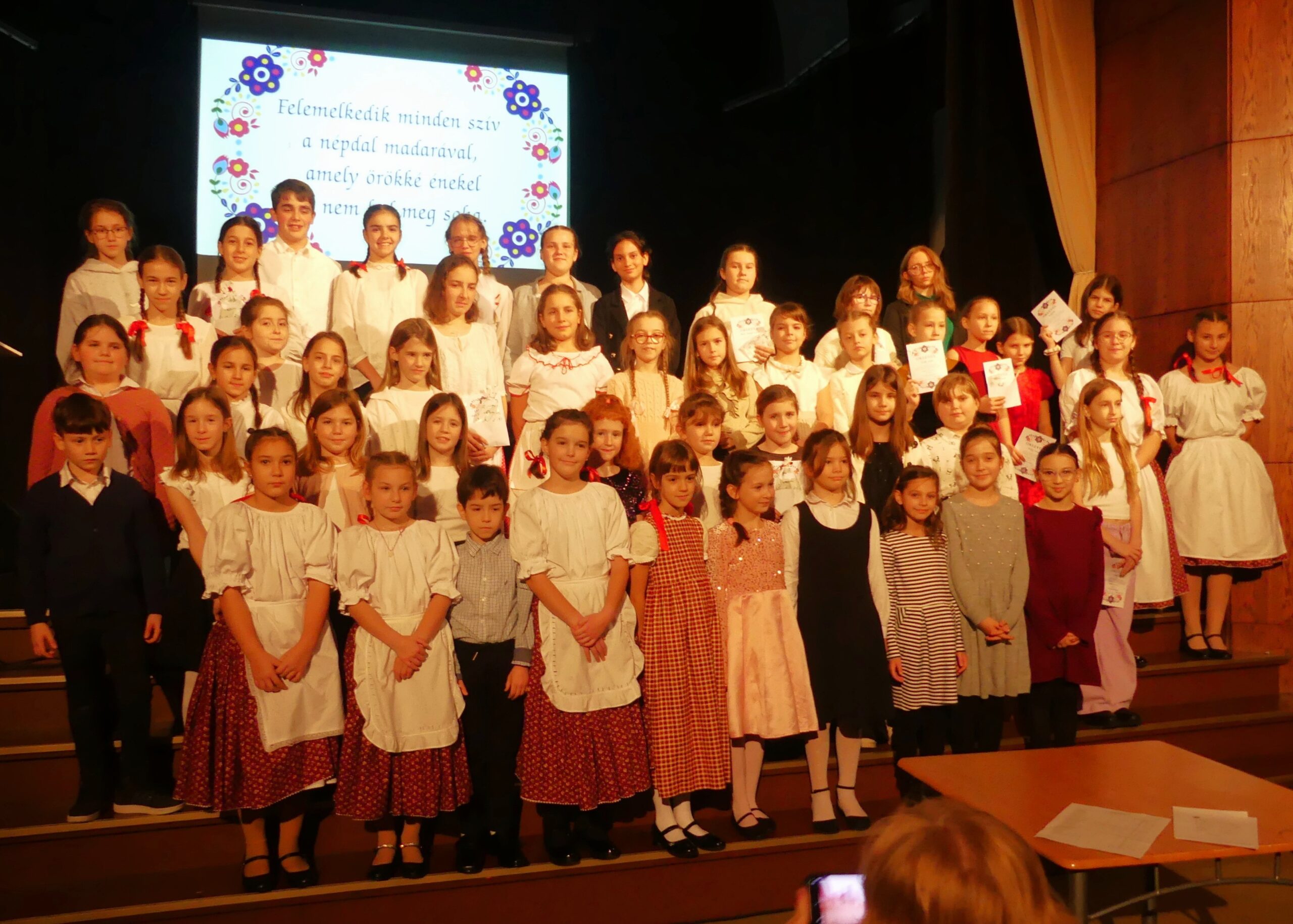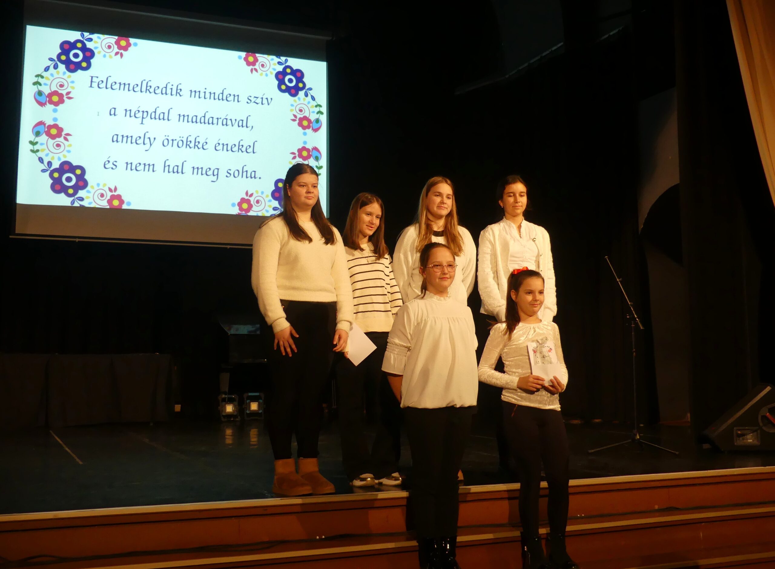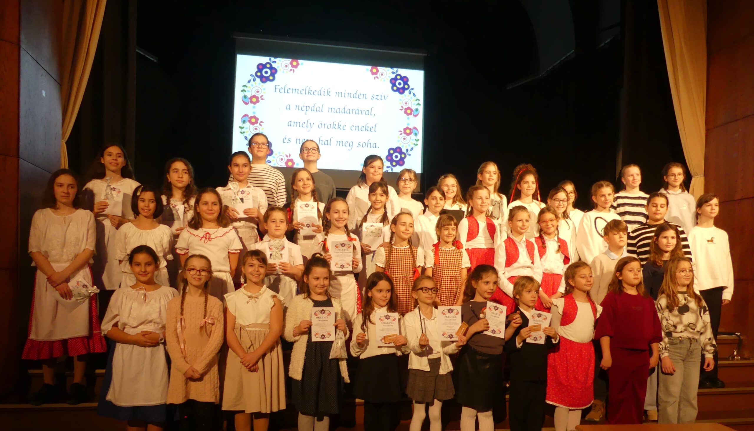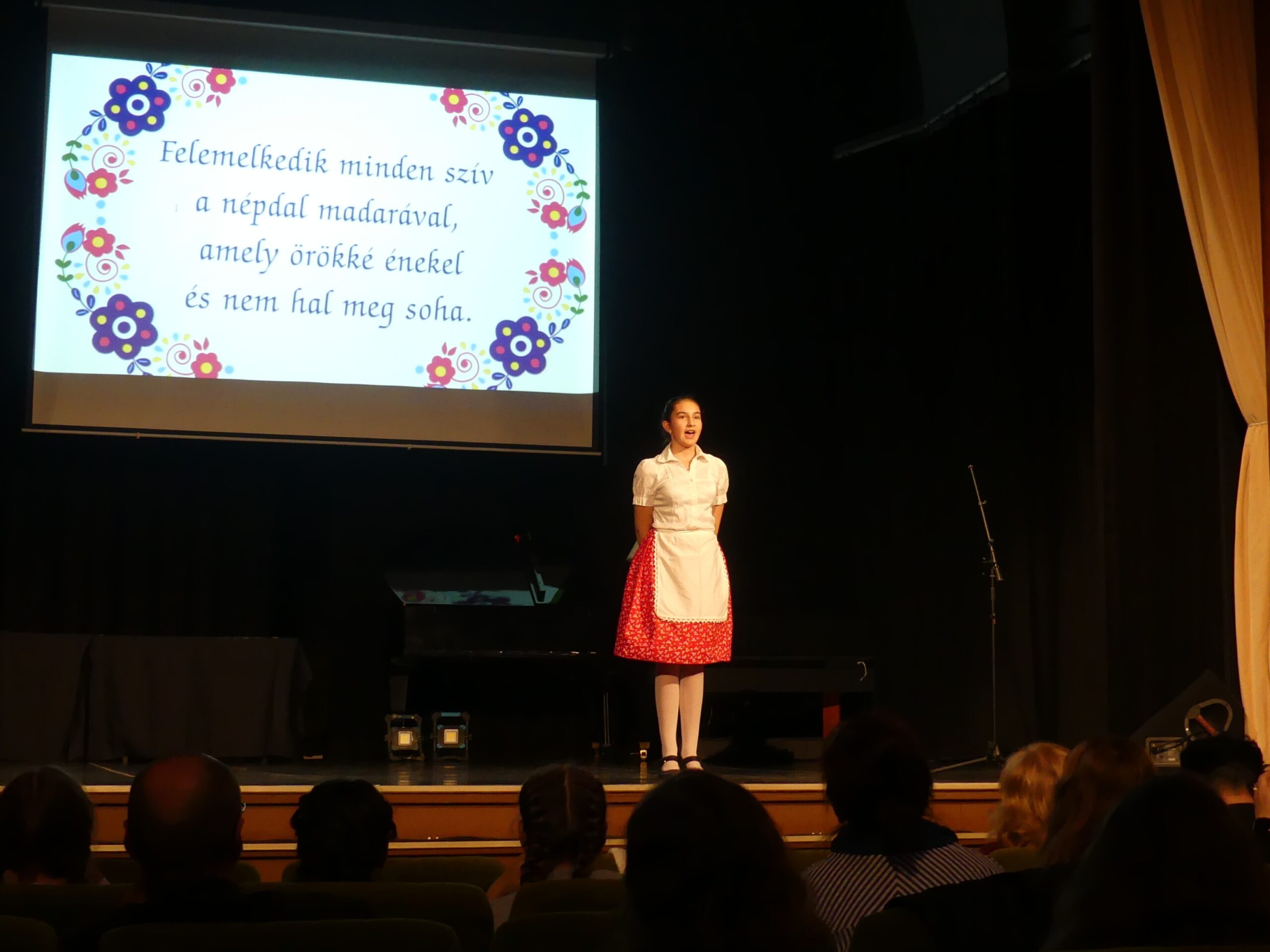 Novemberben 27-én került megrendezésre körzeti népdaléneklési versenyünk, melyre szép számmal érkeztek versenyzők a szentgotthárdi, magyarlak-csörötneki, őriszentpéteri, bajánsenyei, apátistvánfalvai és pártosfalvi iskolákból. A nagy érdeklődésre való tekintettel a verseny a Színházban került megrendezésre. Egyéni, kis-és nagycsoportos kategóriában egyaránt hallhattunk produkciókat. A három tagú zsűri minden produkciót arany, ezüst vagy bronz minősítéssel jutalmazott, egy tanuló pedig kiemelt arany minősítést kapott. A verseny szünetében a szülői közösségünk jóvoltából vendégül láthattuk a versenyzőket és tanáraikat. Jó hangulatú, színvonalas versenyt zártunk.