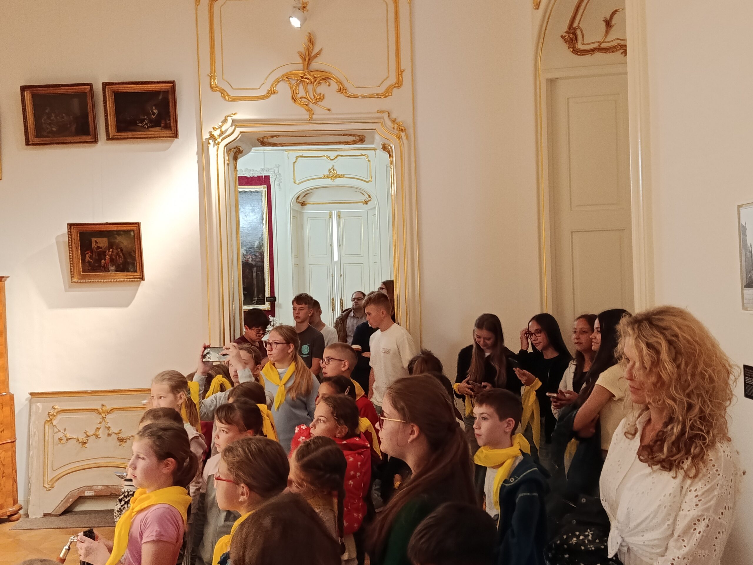 Az Eszterházy-kastélyhoz kisvasúttal érkeztünk, ahol két csoportban vezettek végig minket a 126 szobából álló, lenyűgöző barokk épületben. A kastély szépsége és történelmi hangulata mindenkit magával ragadott.