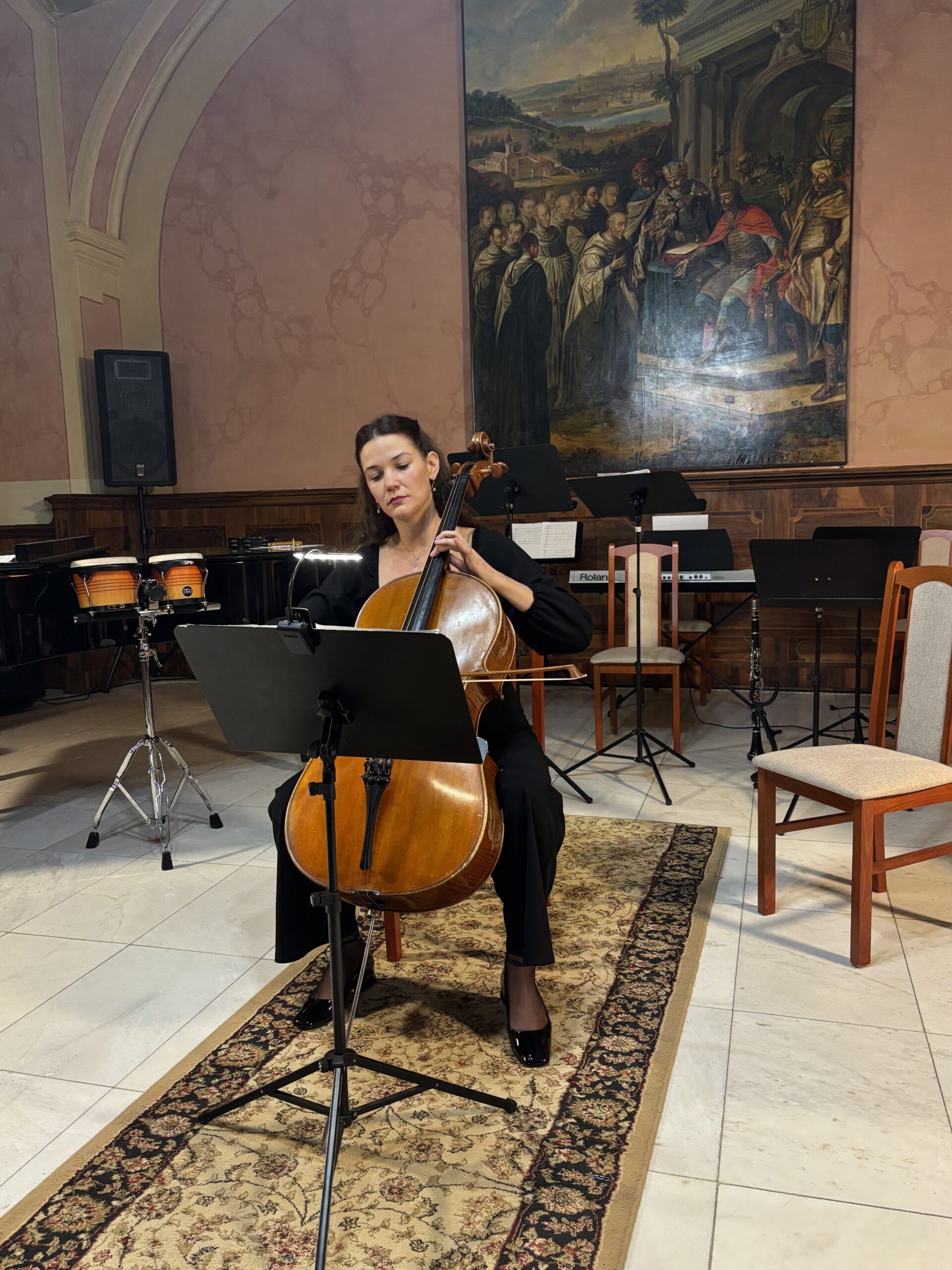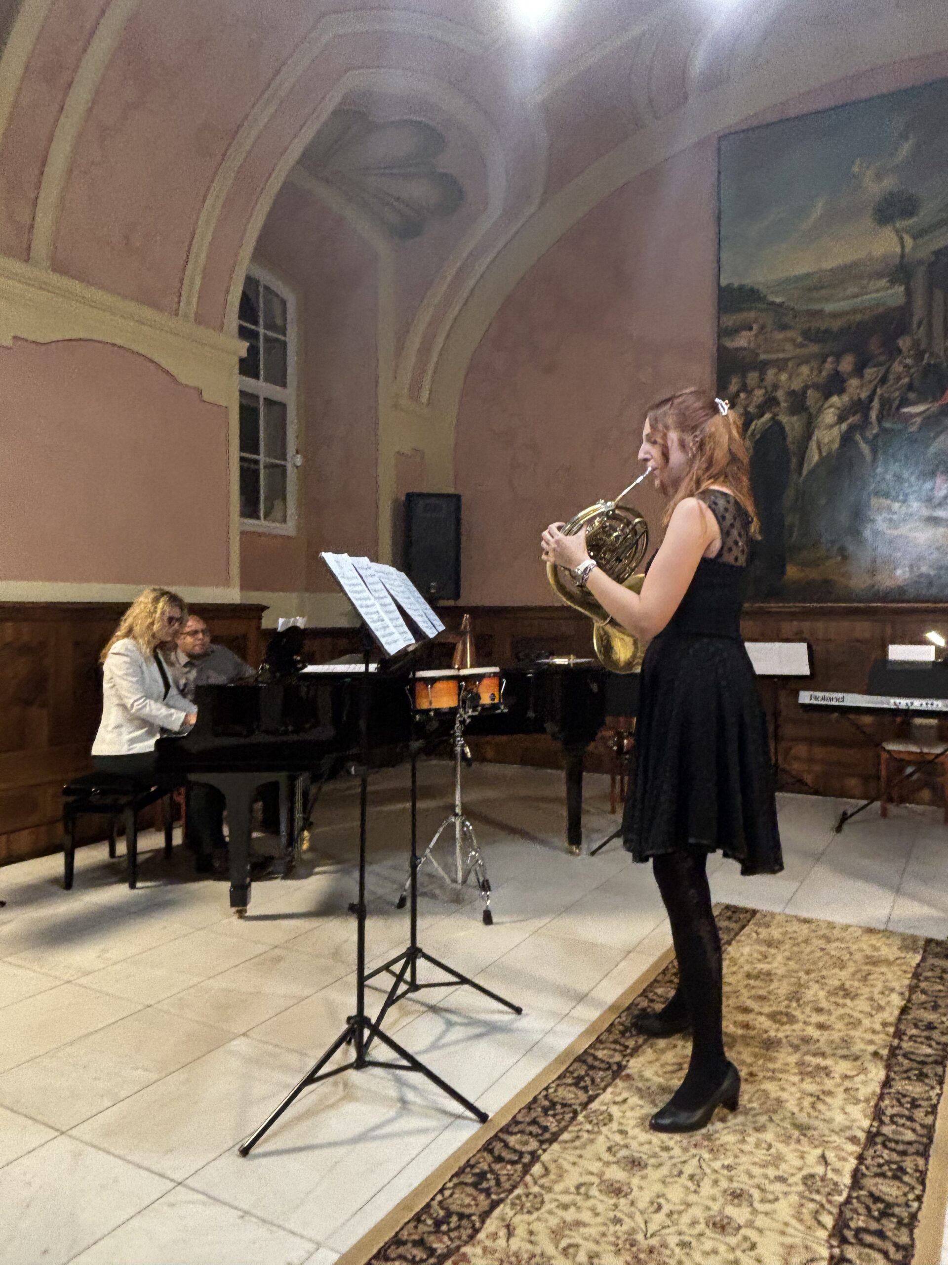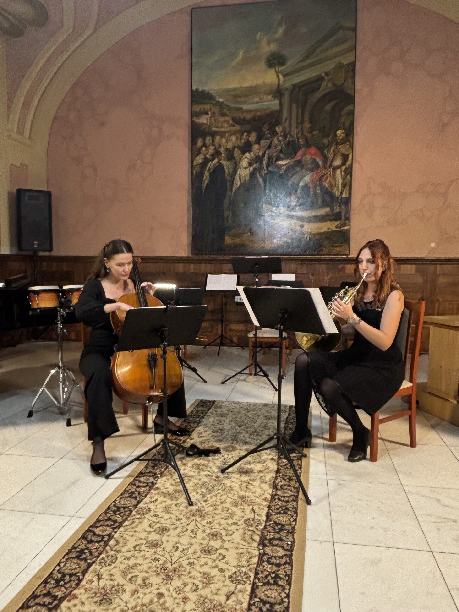 A műsor folytatásában ritkábban hallható hangszerpárosítások is megszólaltak, mint a gordonka–kürt duó Ian Deterlings Grimm Waltz című darabjában. Franck Offertoire című orgonaművét is hallhatta a közönség, majd Schubert és Fauré lírai, romantikus hangzásvilága töltötte be a Refektóriumot.